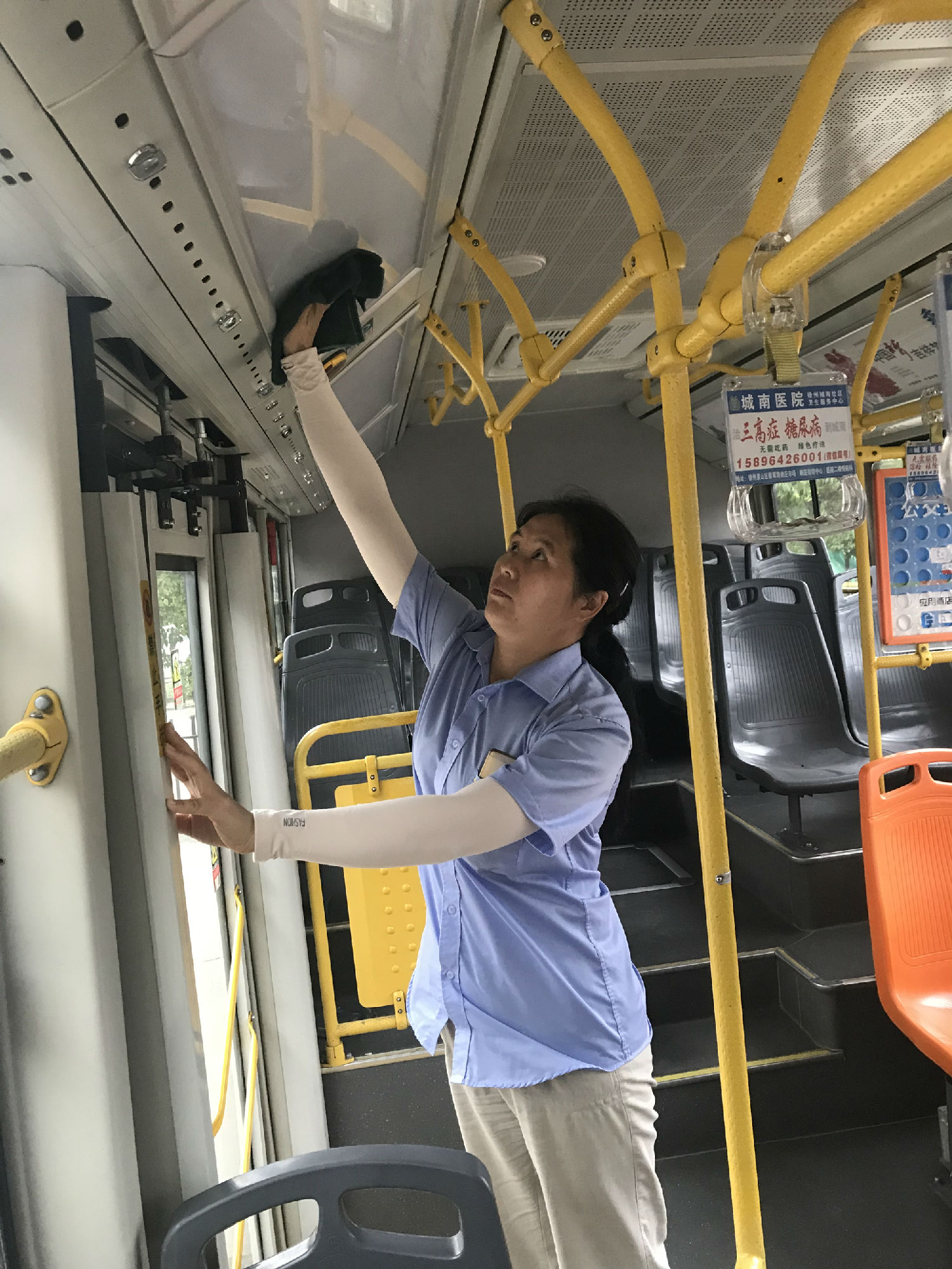 而同時(shí),文明城市復(fù)檢及市民對(duì)公交出行期望值的提升,對(duì)車輛衛(wèi)生工作提出了更高的標(biāo)準(zhǔn)和要求。作為主要負(fù)責(zé)公交3路車輛衛(wèi)生的現(xiàn)場服務(wù)權(quán)洪,心中只有一個(gè)念頭,就是想方設(shè)法把車輛衛(wèi)生弄干凈!