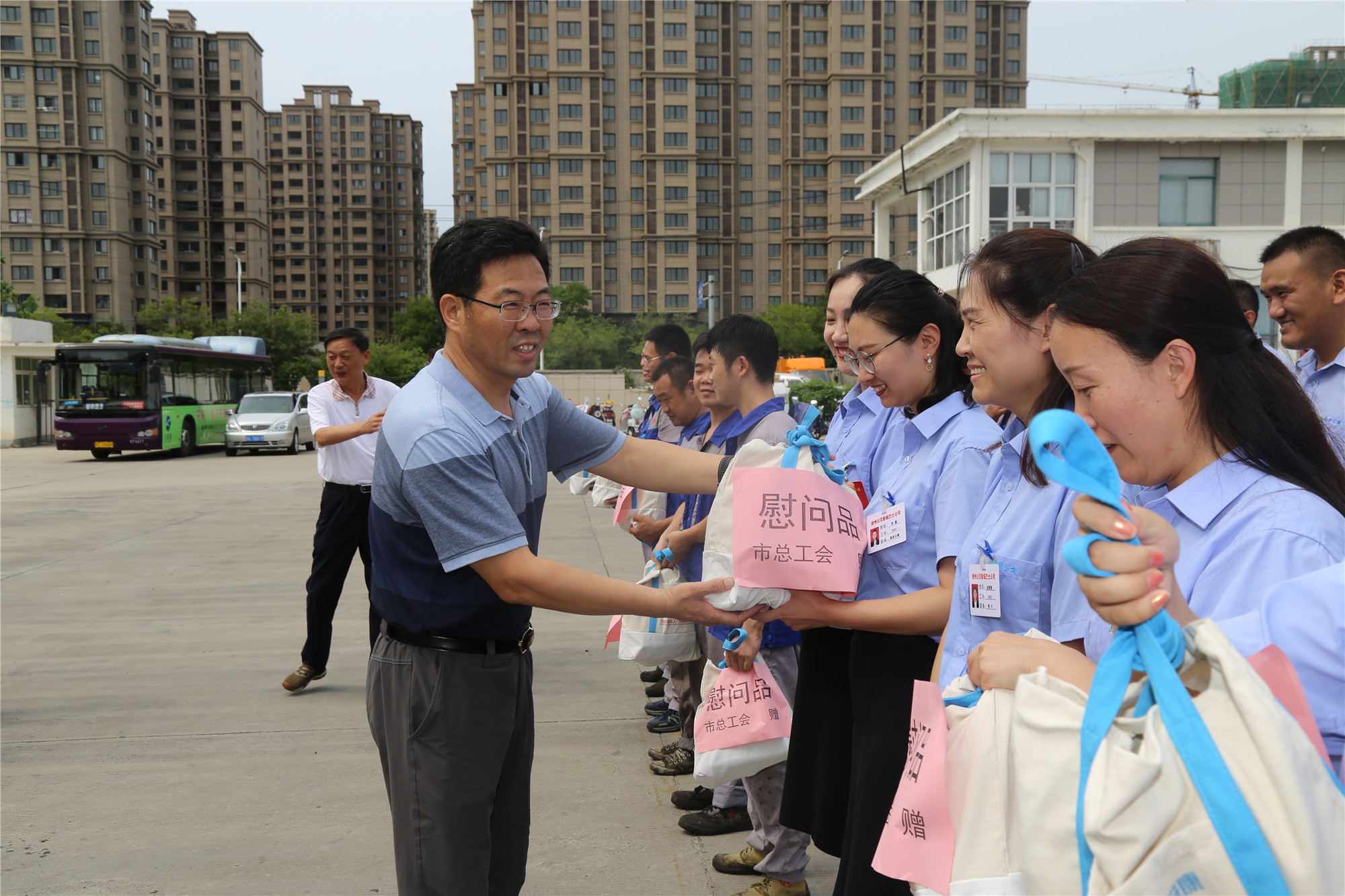 正值盛夏,近期我市持續(xù)高溫、濕熱多雨,持續(xù)攀升的炎熱天氣“烤驗(yàn)”著堅(jiān)守崗位的公交職工。三伏天里,工會(huì)娘家人總是心系一線(xiàn)職工安康,8月1日下午,徐州市總工會(huì)黨組成員、副主席王建民,副調(diào)研員馮相合等一行,在市交通運(yùn)輸局工會(huì)副主席巨玲和徐州公交公司總經(jīng)理馮陸陸,公司黨委副書(shū)記、紀(jì)委書(shū)記、工會(huì)主席竇同銀的陪同下,頂烈日冒酷暑來(lái)到郭莊路公交停車(chē)場(chǎng),看望慰問(wèn)了奮戰(zhàn)在高溫一線(xiàn)的公交職工,送來(lái)了高溫慰問(wèn)品,更送來(lái)了殷殷關(guān)愛(ài)和叮嚀,讓大家感受到了夏日里的絲絲“清涼”。