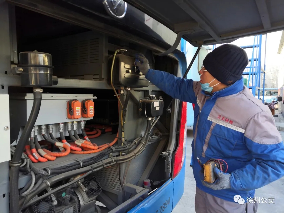 針對氣溫驟降,集團積極做好車輛機務(wù)保障工作,提前對柴油車輛及安裝燃油水暖加熱系統(tǒng)的純電動車輛更換低標(biāo)號柴油,防止出現(xiàn)結(jié)臘現(xiàn)象;做好管路防凍工作,對車輛的氣路管路、儲氣筒徹底放氣、放水;為了預(yù)防車輪制動蹄片與制動鼓、輪胎與地面之間出現(xiàn)冰凍現(xiàn)象,各單位要求駕駛員在出車前提前開啟車載空調(diào)暖風(fēng)設(shè)備,收車后做好車輛駐車停放工作。同時,在每個車場安排專人值守并做好修理人員、充電工的防寒保暖工作。