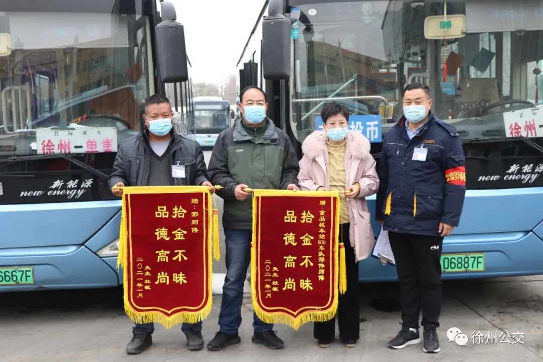 1月21日下午3時(shí),一位女士拿著兩面錦旗來(lái)到淮海文博園公交樞紐調(diào)度室,感謝808路駕駛員邢偉師傅及車隊(duì)工作人員熱心幫助她尋找遺失物品。
