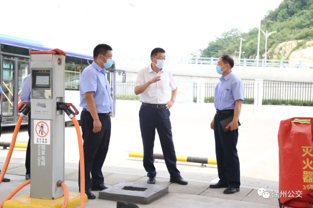 賈泉涌等一行先后來到徐州東站的停保場、充電站、始發(fā)站等處現(xiàn)場查看調(diào)研,認(rèn)真聽取了車輛充電用電、場站建設(shè)、線網(wǎng)規(guī)劃等相關(guān)工作情況的匯報(bào)。