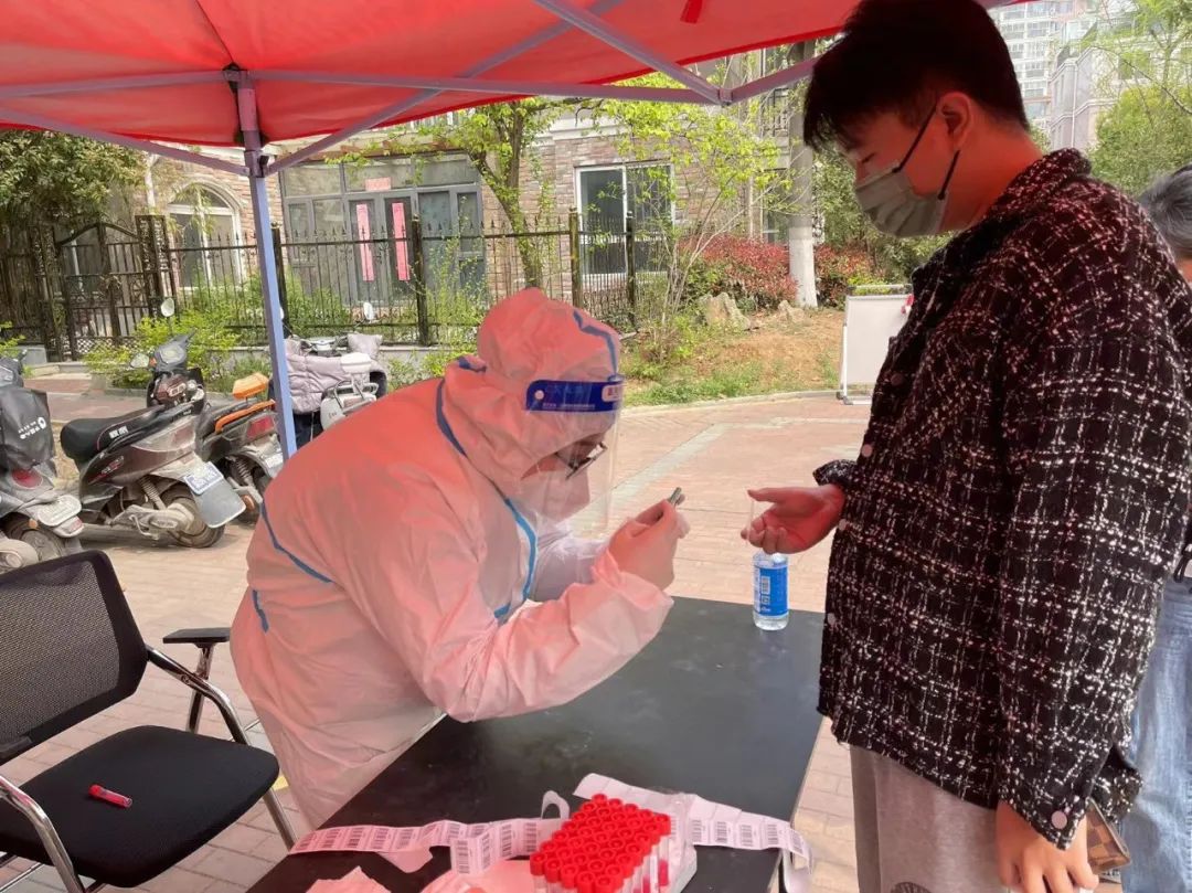 4月7日起,我被安排到社區(qū)進(jìn)行核酸采樣信息錄入,換上防護(hù)服,經(jīng)過簡(jiǎn)單的培訓(xùn),即刻“變身”成了核酸檢測(cè)信息員。第一次穿上“大白”的衣服,心情忐忑緊張,既要保證登記無誤,還要高速有效,我在手上反復(fù)操作測(cè)試。在錄入過程中很多學(xué)生沒有身份證,需要手動(dòng)錄入,但帶著防護(hù)面罩經(jīng)常起霧,要反復(fù)確認(rèn);穿著防護(hù)服,不能喝太多水,也不敢去廁所,因?yàn)榉雷o(hù)服脫下來就要重新?lián)Q一套新的……一天連續(xù)工作了8個(gè)小時(shí),全身衣服濕透,摘下防護(hù)面罩的時(shí)候真是像脫了一層皮,渾身像散了架一樣。但是與始終奮戰(zhàn)在社區(qū)防控第一線,每天只睡了3、4個(gè)小時(shí)的社區(qū)書記鄧巖相比,我所做的微不足道。聽到社區(qū)的鄰里對(duì)我說的一聲聲“感謝”,那一刻我感到自己所做的一切都是值得的。