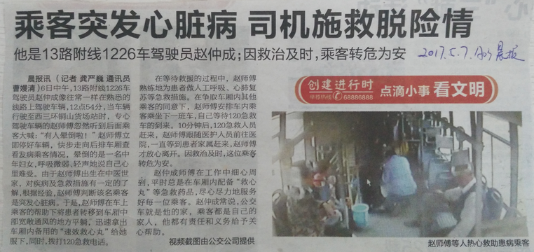 乘客突發(fā)心臟病 司機施救脫險情