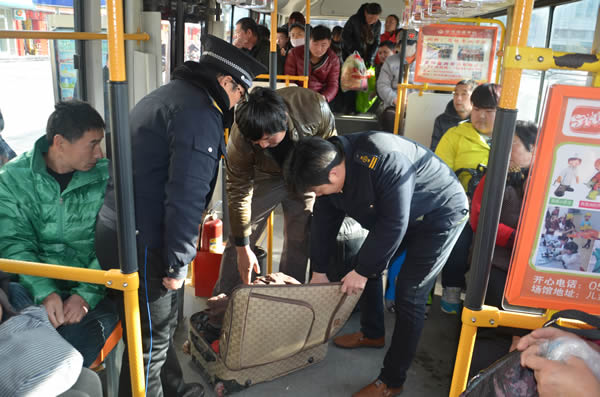 12月2日,在第三個全國交通安全日來臨之際,公交服務(wù)督導隊聯(lián)合公安公交管理大隊開展了危險品大檢查。檢查組分為5個小隊,分別在火車站廣場、副廣場,東甸子公交站臺,對公交車乘客攜帶物品進行仔細檢查,確保公交乘客安全。